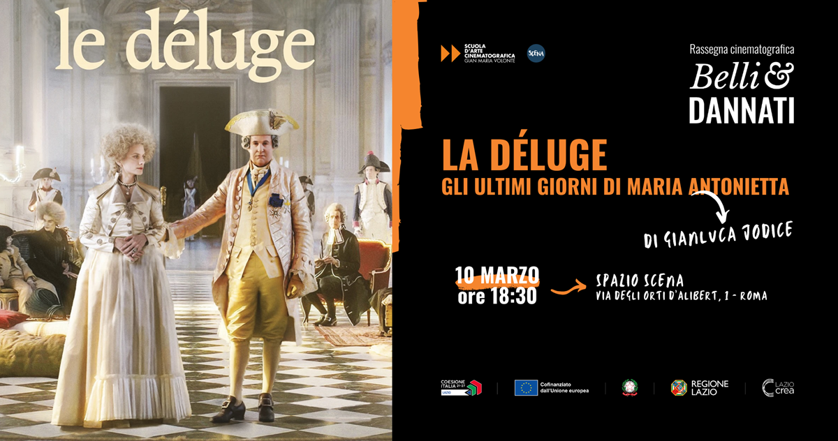 Martedì 10 marzo alle 18.30 si terrà il quinto appuntamento della rassegna cinematografica “Belli&Dannati”, promossa dalla Scuola Volonté, con la proiezione del film Le Déluge – Gli ultimi giorni di Maria Antonietta (2024). A seguire, il regista Gianluca Jodice dialogherà con Boris Sollazzo, curatore degli eventi della Volonté allo Spazio Scena. L’ingresso è gratuito.